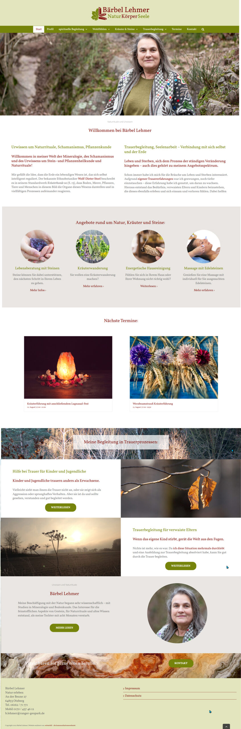 2016 Relaunch Website WordPress responsive im nahezu gleichen Design; Eventkalender, Trennung Natur erleben von Lebensberatung, für letztere eigene Website